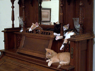 And it looks like we'll have these kittens longer than we'd naively expected. We hoped we would be able to rescue the kittens and find good homes for them before too much time slipped away from us, but few people are interested. We can't imagine dropping any of them off at a shelter to join twenty or so other cats in confined quarters, so we'll keep caring for them, all the while praying that we can find a home for three of them.
